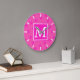 Monogram hot pink circles pattern large clock