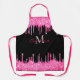 Monogram Hot Pink Dripping Glitter and Black Name Apron
