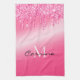 Monogram Hot Pink Dripping Glitter Metallic Waffle Tea Towel