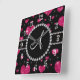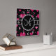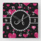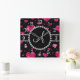 Monogram hot pink glitter hearts black diamonds square wall clock