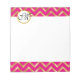 A faux shiny pink and faux gold zigzag pattern hugs the top and bottom edge of this pad and has a golden circle near the top left edge on which your personalised monogram appears.