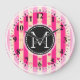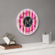 Monogram Hot Pink Stripes Modern Heart Pattern Large Clock
