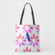 Monogram Hot Pink Watercolor Retro Floral Tote Bag