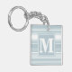 Monogram ice blue stripes key ring
