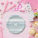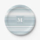 Monogram ice blue stripes paper plate
