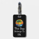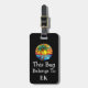 Easy to recognise this tropical monogram luggage tag custom design has monogram initials you can personalise online and is designed with a tropical sunset graphic in the background with the design on both sides so you recognise your luggage no matter which side is displayed.