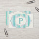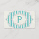 Monogram in a frame and aqua, white stripes eye catching business cards, featuring your monogram in an elegant and classy ivory frame with grey outline. There is another frame under it with a striped pattern in turquoise blue, white. This stylish, girly design is modern with a retro/vintage flair. The Parisian font is used for your text. It is completely customisable and you can customise it and add your text, name or initials. You can change background colour - turquoise- choosing from the Zazzle colour chart. This sophisticated personalised business card design is perfect for personal or professional use.