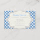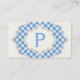 Monogram in a frame and blue, white gingham pattern eye catching business cards, featuring your monogram in an elegant and classy ivory frame with grey outline. There is another frame under it with a gingham pattern in sky blue, white. This stylish, girly design is modern with a retro/vintage flair. The Parisian font is used for your text. It is completely customisable and you can customise it and add your text, name or initials. You can change background colour - blue - choosing from the Zazzle colour chart. This sophisticated personalised business card design is perfect for personal or professional use.
