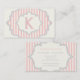 Monogram in a frame and pink, white stripes eye catching business cards, featuring your monogram in an elegant and classy ivory frame with grey outline. There is another frame under it with a striped pattern in pink, white. This stylish, girly design is modern with a retro/vintage flair. The Parisian font is used for your text. It is completely customisable and you can customise it and add your text, name or initials. You can change background colour - pink- choosing from the Zazzle colour chart. This sophisticated personalised business card design is perfect for personal or professional use.