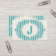Monogram in a frame and teal, white stripes eye catching business cards, featuring your monogram in an elegant and classy ivory frame with grey outline. There is another frame under it with a striped pattern in teal, white. This stylish, girly design is modern with a retro/vintage flair. The Parisian font is used for your text. It is completely customisable and you can customise it and add your text, name or initials. You can change background colour - teal- choosing from the Zazzle colour chart. This sophisticated personalised business card design is perfect for personal or professional use.