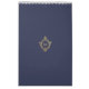 The back cover has just the golden monogram in crest in the center, on navy blue background.