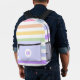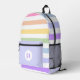 Monogram in White Circle Pastel Rainbow Stripes Printed Backpack