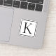 You can customise this sticker with your initial. Coloured in black text with a black bordered square.