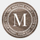 Monogram initial Brown woodgrain return address Classic Round Sticker
