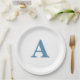 Monogram Initial Dusty Blue Elegant Custom Name Paper Plate