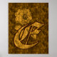 Elegant monogram letter E in gold satin with a delicate peony flower poster print .
