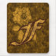 Monogram initial F in gold satin with a delicate golden peony floral computer mousepad. This image is available on many products in my gallery.