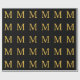 Monogram Initial Gold Black Custom Name Party Wrapping Paper