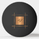 Trendy luxury exclusive looking black script monogrammed ping pong balls featuring a faux gold copper metallic glitter square and frame stripes. Personalised with monogram letter initials. It can be an elegant personalised personal or family gift for a coach or sports lover's birthday, housewarming, retirement, holiday, anniversary, or any other occasion.