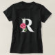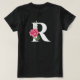 Monogram Initial Letter R in White with Pink Rose T-Shirt