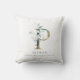 Add this decorative and personalised pillow to your home decor. This monogram throw pillow has your initial, name, and ability to customise the messages featuring botanical greenery such as eucalyptus and gold elements for a super chic look. For the letter P, makes a great gift