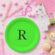 Monogram Initial Neon Green Bright Colourful Custo Paper Plate