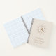 Elegant notebook with your monogram initial inside a border of radial dots resembling a sun on light neutral/ivory background. Below is a teplate field for your name and one line of custom text. Colours can be customised with the design tool.