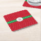 Trendy holiday red and white Swiss polka dot pattern, green horizontal band and framed open face initial are featured on these 4"x4" scallop square paper coasters. Easily change the initial using the Template provided. Made of 50 pt. pulp board and printed in vibrant full colour. These paper coasters come in a set of 6, are excellent quality and as thick as pub coasters. See "About This Product" for more information.