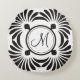 Monogram Initial Round Pillow-Black Floral Cushion