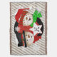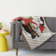 A snowman in a top hat, a snowman in a red winter hate and striped scarf, a background of grey diagonal stripes with a red polka dotted circle on black with a white star that you can easily customise with your monogram initial! This pretty snowman Christmas throw blanket will be a treasured item year after year!