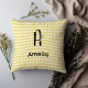 Monogram initial watercolor flower gingham pattern Throw Pillow
