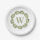 Monogram Initial Wedding Botanical Green Wreath Paper Plate