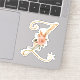 "Monogram Initial Z Gold Glitter Peony Rose Floral Shaped Transparent Stickers." Elegantly created out of dimensional gold glitter in a script handwriting font, letter "Z" decorated with a dusty pink peach peony flower with rusty earth tone leaves and muted sage and forest green greenery foliage. Art painted by internationally licensed artist and designer, Audrey Jeanne Roberts. Copyright.
