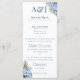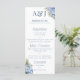 This elegant wedding menu features an elegant floral theme with beautiful hydrangea flowers. Two sample monogram initials are printed in the top portion. You can personalise the menu to include your own initials and custom food options. A delicate bouquet of watercolor blue hydrangeas is printed in the top right, and another in the bottom left.