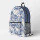 Monogram Initials Blue White French Toile Pattern Printed Backpack