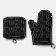 Monogram Initials couple family wreath elegant modern minimal home decor gift oven mitt and pot holder black and white design. Part of a collection.
