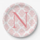 Monogram Initials Damask Pastel Peach Paper Plate