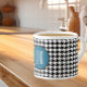 Classic retro black and white houndstooth pattern with ocean blue framed circle and platinum-colour skinny font initials. Perfect gift for that special cappuccino or espresso drinker. Easily change initials to make this yours using the Template provided. See "About This Product" at side for more information.