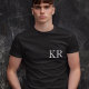 Simple, stylish custom initial letter monogram men's t-shirt in modern minimalist typography in black and white. A perfect custom gift or fashion accessory with a personal touch!
