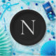 Monogram Initials Name Customised Black White Paper Plate
