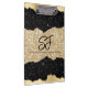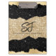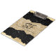 This professional custom clipboard feature a glamourous black and gold design. The centre portion features a gold glitter style pattern, and the top and bottom portions feature an abstract, black glitter and gold foil texture. Sample monogram initials are printed in the centre in an elegant script font, followed by a name and job title. You can personalise the clipboard to include your own custom initials or other text.