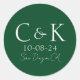 Monogram Initials on Forest Green Wedding Classic Round Sticker