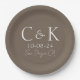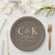 Monogram Initials on Shitake Brown Wedding Paper Plate