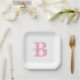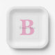 Monogram Initials Pink Custom Name Baby Shower Paper Plate