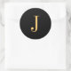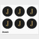 Monogram J gold-coloured on black background Classic Round Sticker
