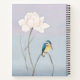Artwork based off of vintage Japanese print (housed at Rijksmuseum) featuring a colourful and cute kingfisher sitting on a branch, a big light pink lotus flower and a river at sunset. Custom name written in hieroglyph-like font. Watercolor. Hazy background with perfectly seen vintage paper texture. Blue, lilac, grey, pink, emerald green, orange, golden yellow, sapphire blue. Very cute and romantic gift for someone who loves birds or vintage Japanese paintings.