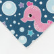 This monogrammed fleece blanket features cute cartoon seahorses, jellyfish, and starfish surrounded by bubbles and stars in pink, purple, and blue.