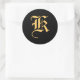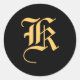 Monogram "K" Gold-Colour on Black Classic Round Sticker