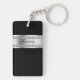 Monogram keychain with pretty printed silver look monogram emblem you can personalise with any name, initials, or message and printed pink diamond jewel bling, along with printed pink elegant black background you can customise. Use as a gift or party favour. Designed as keychains for women or keychains for girls, in a fun two side acrylic design that lets you carry your keys in style.
