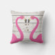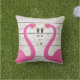 This cute outdoor cushion with a unbleached wood sign is decorated with two pink flamingos in the silhouette of a heart, about to kiss with monograms of the happy couple, making it a great beach house, pool house, cottage, deck, patio or poolside accessory for the newlyweds. This pillow coordinates perfectly with several other outdoor cushions in the Outdoor Pillow Collection or Romantic Outdoor Pillow Collection of PrettyFancyPillows and would be perfect for a sweetheart table at a beach, tropical or Caribbean wedding.
